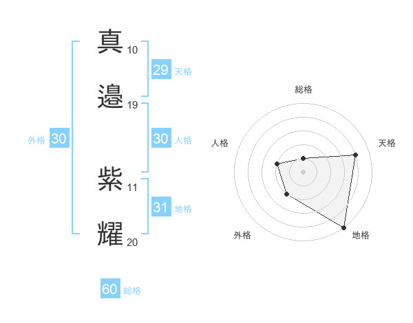 真邉 紫耀さんの総格は60画の1点!
