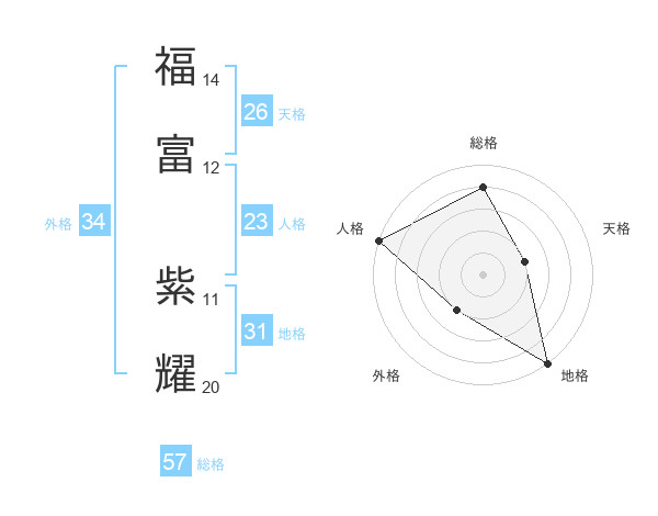 福富 紫耀さんの総格は57画の4点!