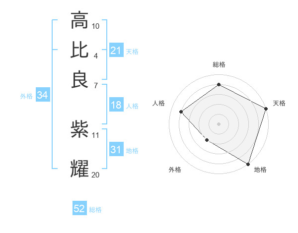 高比良 紫耀さんの総格は52画の4点!