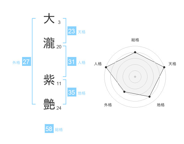 大瀧 紫艶さんを姓名の画数から五運を鑑定