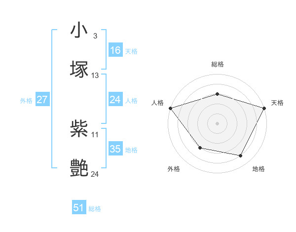 小塚 紫艶さんの総格は51画の3点!