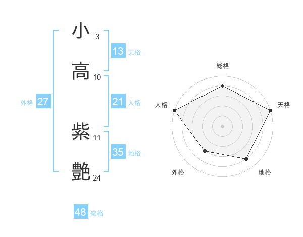 小高 紫艶さんを姓名の画数から五運を鑑定