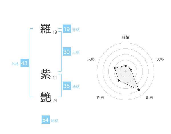 羅 紫艶さんを姓名の画数から五運を鑑定