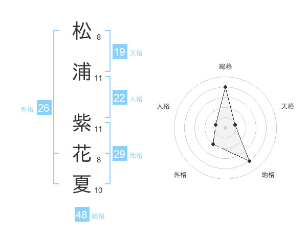 松浦 紫花夏さんを姓名の画数から五運を鑑定