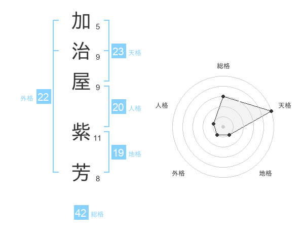 加治屋 紫芳さんを姓名の画数から五運を鑑定