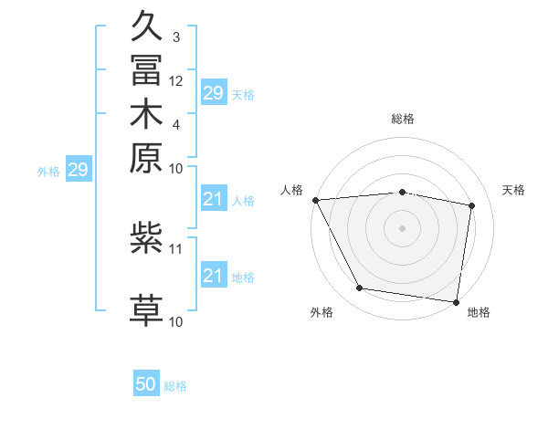 久冨木原 紫草さんの総格は50画の2点!