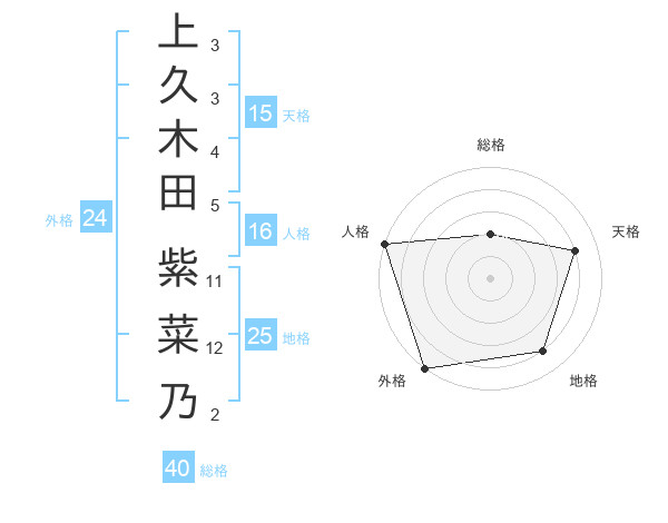 上久木田 紫菜乃さんを姓名の画数から五運を鑑定