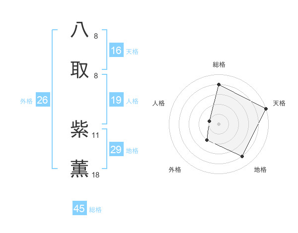 八取 紫薫さんを姓名の画数から五運を鑑定