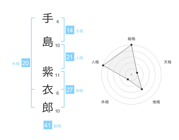 手島 紫衣郎さんを姓名の画数から五運を鑑定