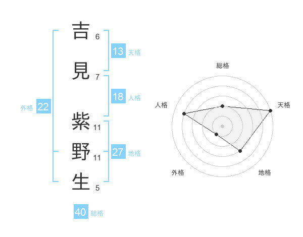 吉見 紫野生さんの総格は40画の2点!