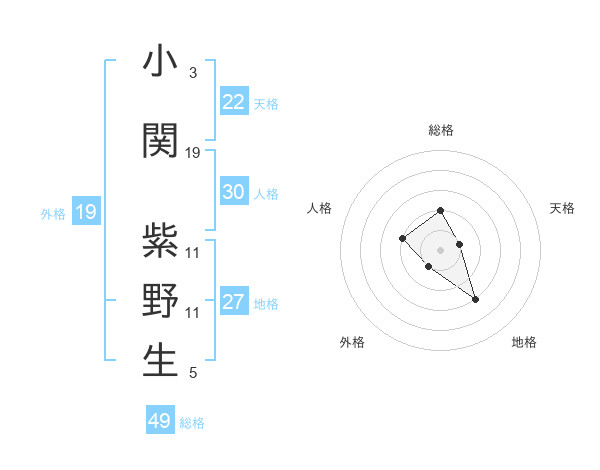 小関 紫野生さんを姓名の画数から五運を鑑定