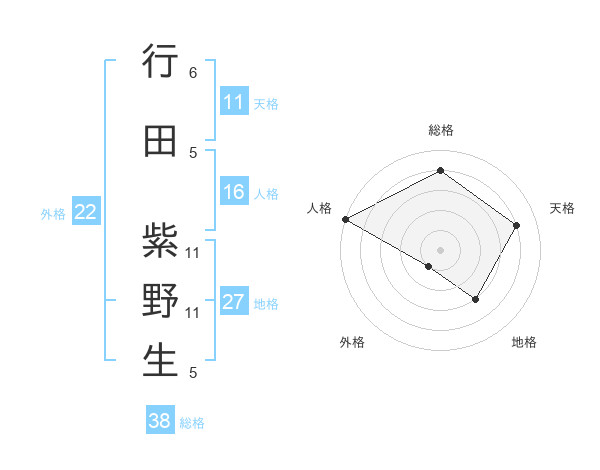 行田 紫野生さんを姓名の画数から五運を鑑定
