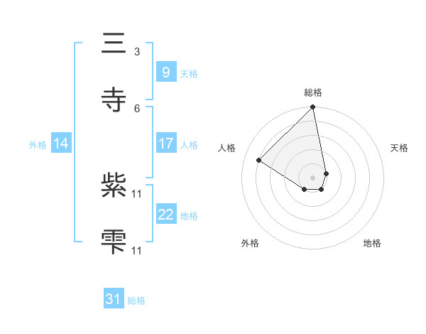三寺 紫雫さんの総格は31画の5点!