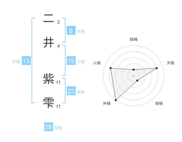 二井 紫雫さんを姓名の画数から五運を鑑定