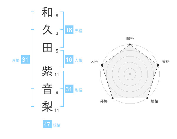 和久田 紫音梨さんを姓名の画数から五運を鑑定