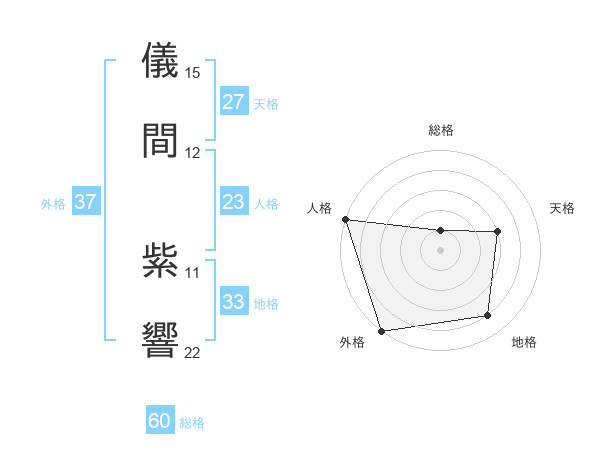 儀間 紫響さんを姓名の画数から五運を鑑定