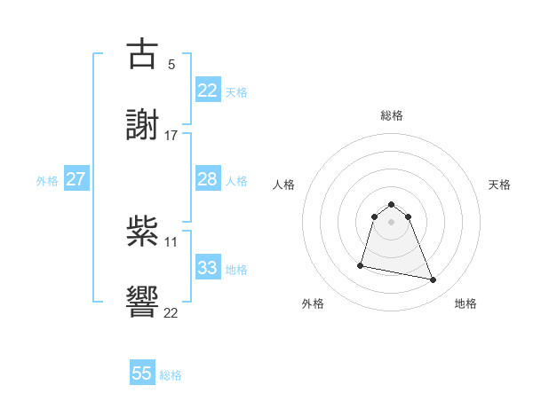 古謝 紫響さんの総格は55画の1点!