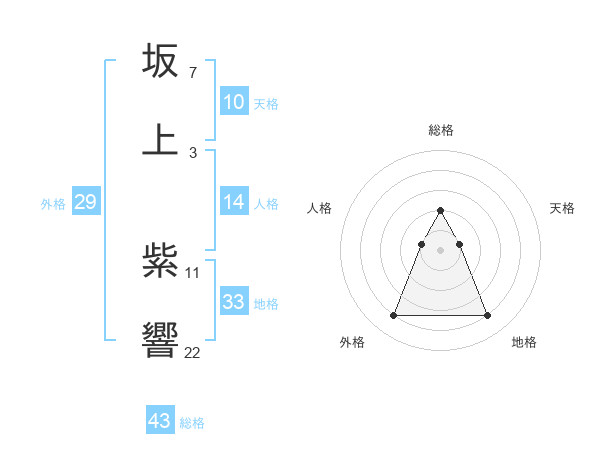 坂上 紫響さんを姓名の画数から五運を鑑定