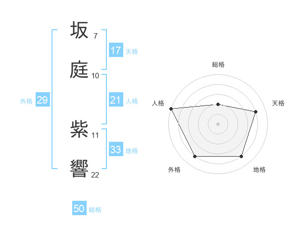 坂庭 紫響さんを姓名の画数から五運を鑑定