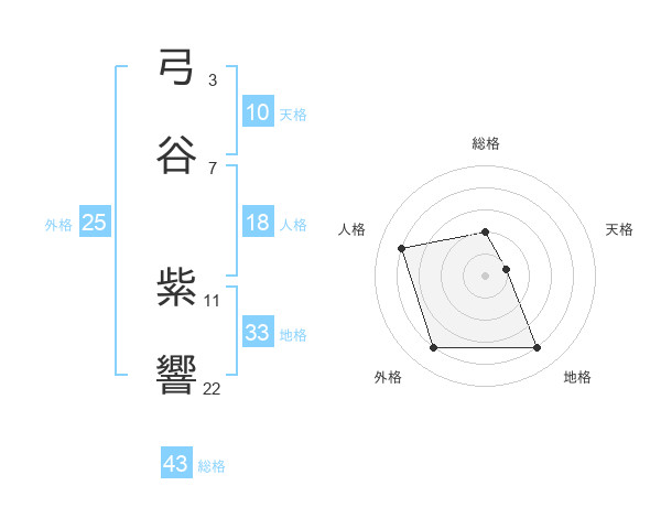 弓谷 紫響さんの総格は43画の2点!
