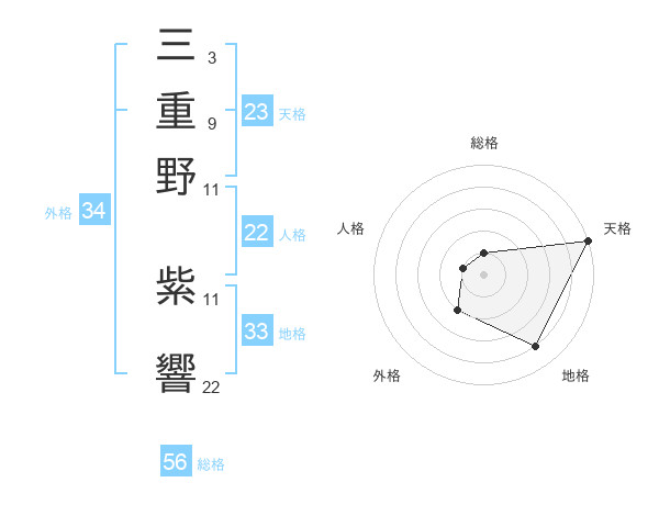 三重野 紫響さんを姓名の画数から五運を鑑定