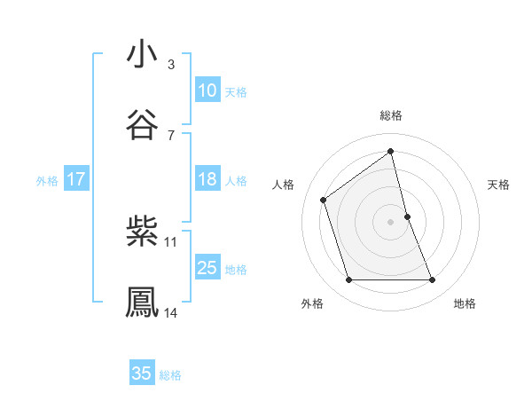 小谷 紫鳳さんの総格は35画の4点!