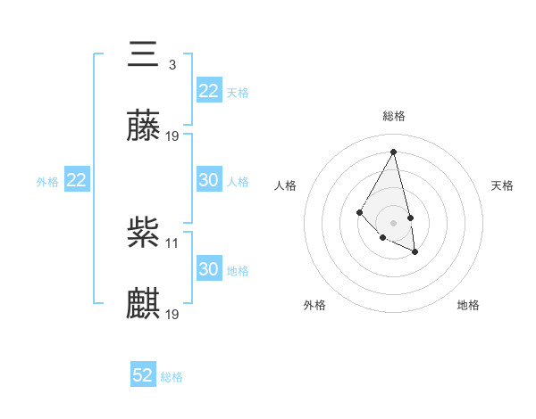 三藤 紫麒さんの総格は52画の4点!
