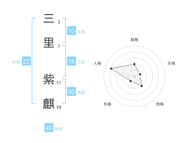 三里 紫麒さんを姓名の画数から五運を鑑定
