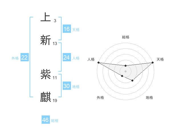 上新 紫麒さんを姓名の画数から五運を鑑定