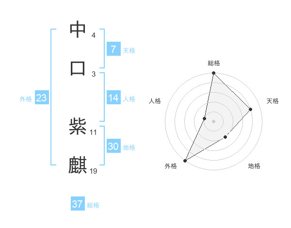 中口 紫麒さんの総格は37画の5点!