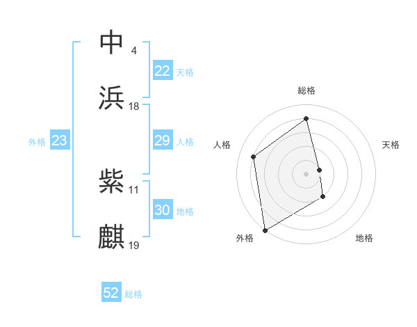中浜 紫麒さんの総格は52画の4点!