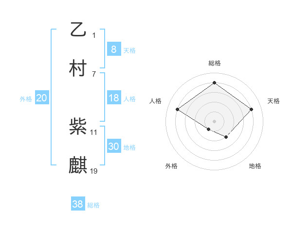 乙村 紫麒さんの総格は38画の4点!