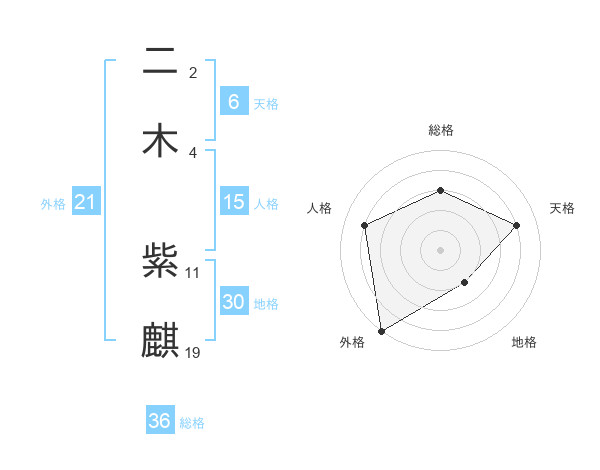 二木 紫麒さんを姓名の画数から五運を鑑定