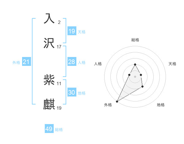 入沢 紫麒さんの外格は21画の5点!