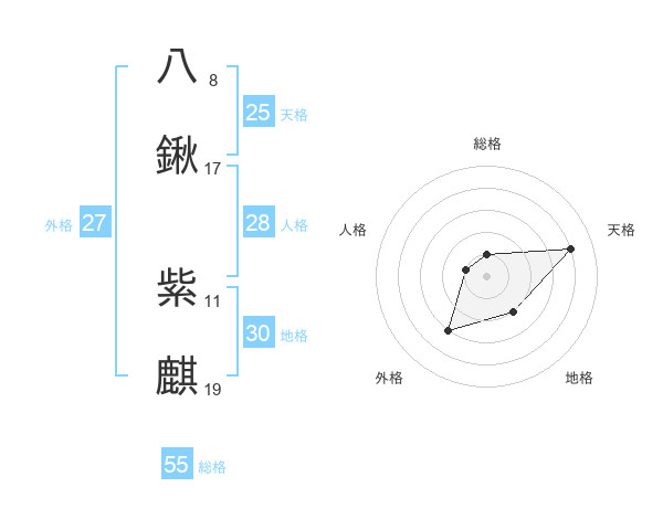 八鍬 紫麒さんを姓名の画数から五運を鑑定
