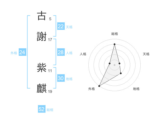 古謝 紫麒さんを姓名の画数から五運を鑑定