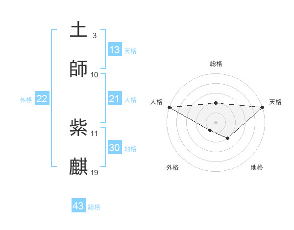 土師 紫麒さんを姓名の画数から五運を鑑定