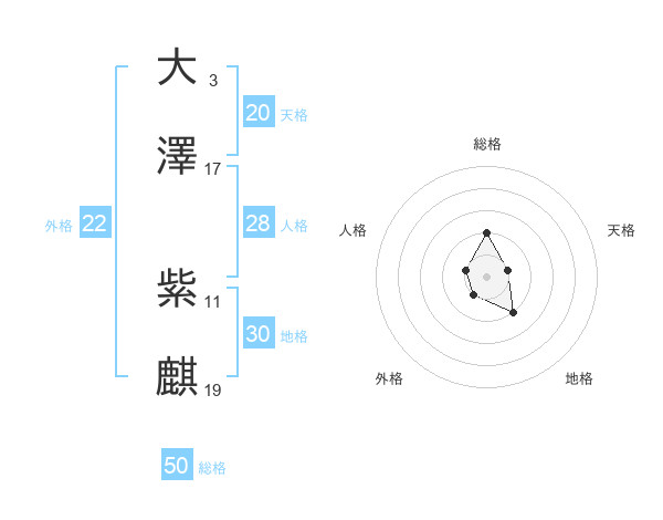 大澤 紫麒さんを姓名の画数から五運を鑑定