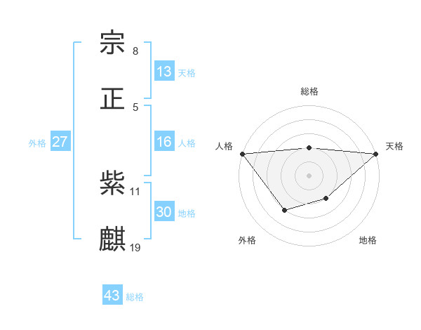 宗正 紫麒さんを姓名の画数から五運を鑑定