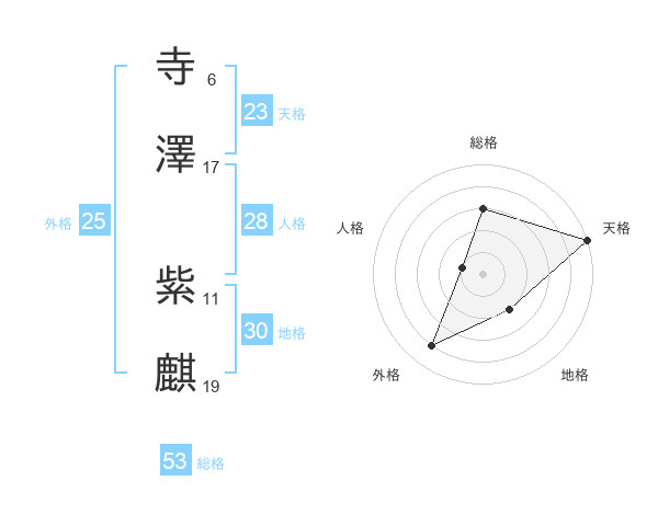 寺澤 紫麒さんの天格は23画の5点!