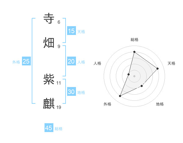 寺畑 紫麒さんの総格は45画の4点!