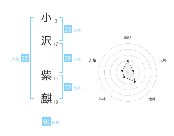 小沢 紫麒さんの天格は20画の1点!