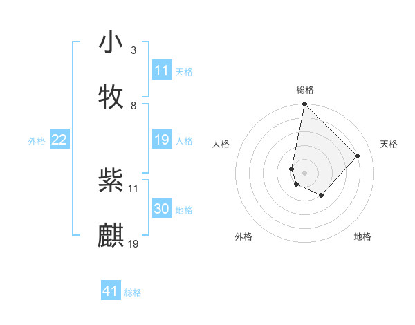 小牧 紫麒さんを姓名の画数から五運を鑑定