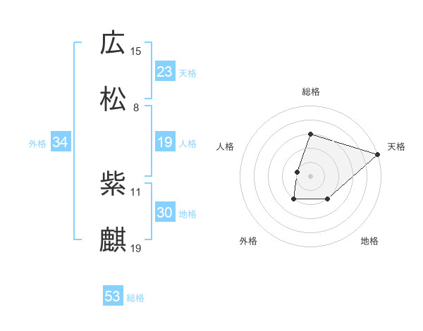 広松 紫麒さんの天格は23画の5点!