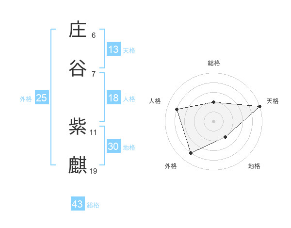 庄谷 紫麒さんの天格は13画の5点!