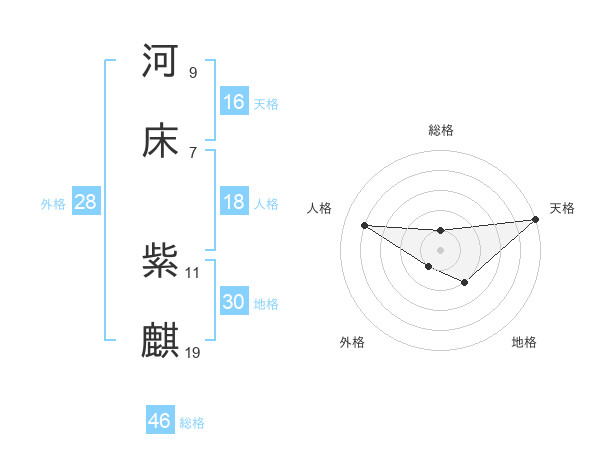 河床 紫麒さんの天格は16画の5点!