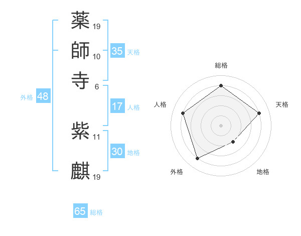 薬師寺 紫麒さんの総格は65画の4点!
