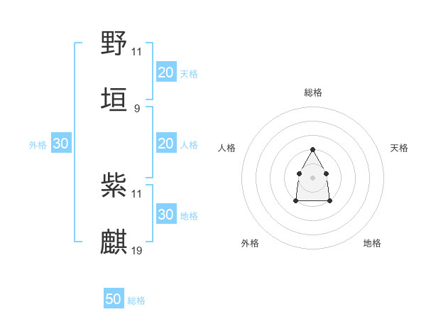 野垣 紫麒さんを姓名の画数から五運を鑑定