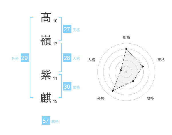 髙嶺 紫麒さんの総格は57画の4点!