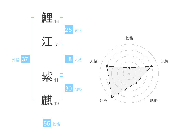 鯉江 紫麒さんの総格は55画の1点!